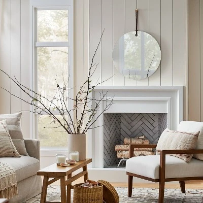 Add visual interest and modern style anywhere in your home with this Frameless Mirror with Braided Leather Hanging Strap from Threshold™ designed with Studio McGee. This round wall-mount mirror makes a decorative statement anywhere in your home. It features a reflective glass to create a brighter and more open feel to any room, and comes with a braided leather hanging strap so you can easily hang it on any wall. Use this unique piece as a functional vanity mirror or as an accent above the entryway console table to brighten up your space.