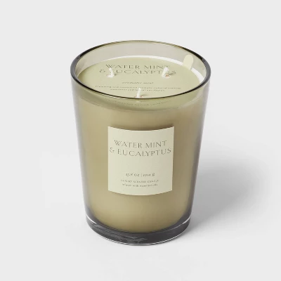 Elevate your space with this Colored Vase Glass with Dustcover Water mint and Eucalyptus Candle Green – Threshold™. It features water mint and eucalyptus to infuse your surroundings with a soothing scent. The glass vase adds a touch of elegance to any room. Whether you’re unwinding after a long day or setting the mood for a special occasion, this Colored Vase Glass with Dustcover Water mint and Eucalyptus Candle Green – Threshold™ creates a relaxing ambiance.